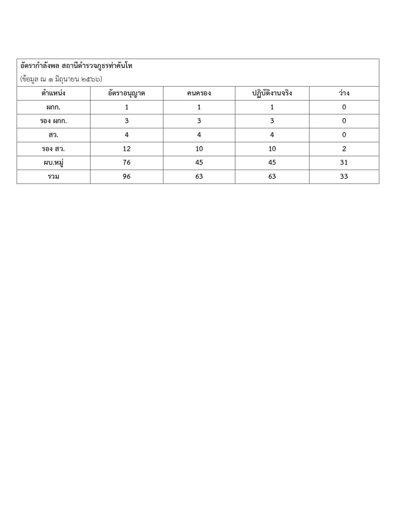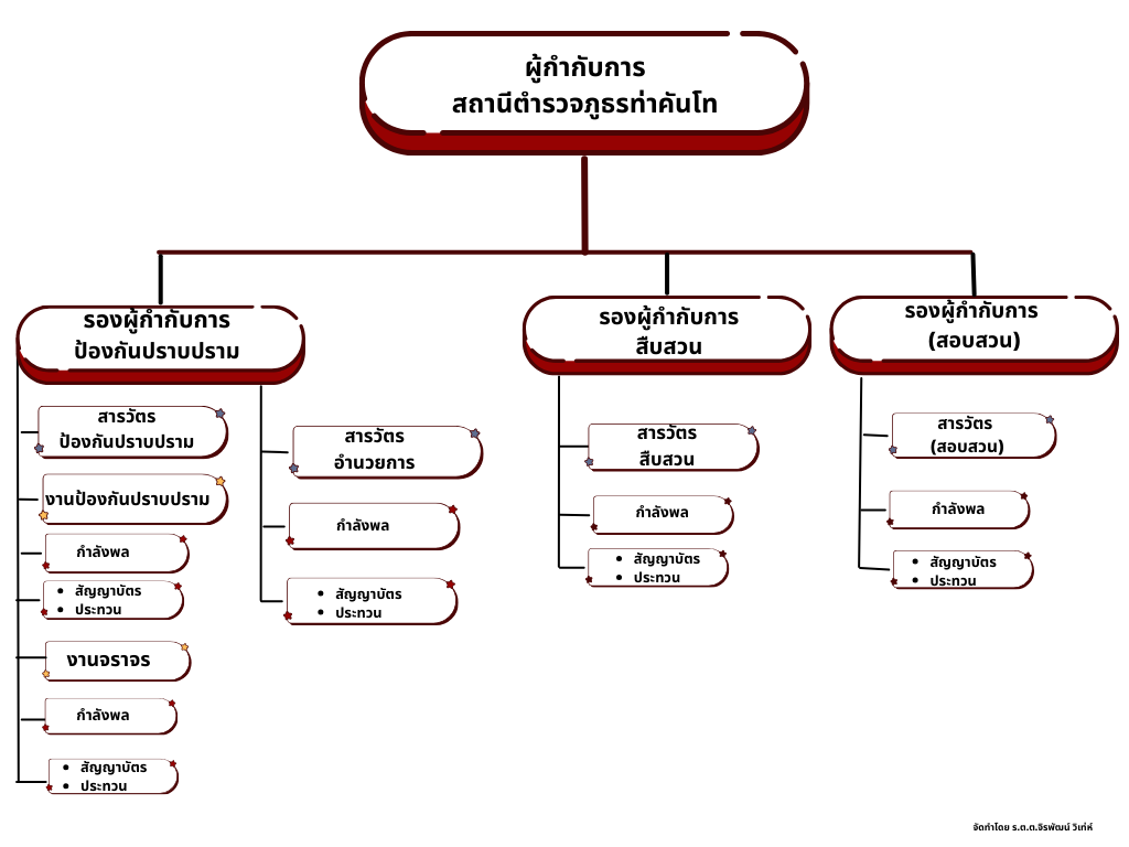 • O1 โครงสร้าง และอำนาจหน้าที่ โครงสร้างการแบ่งส่วนราชการสถานีตำรวจภูธรท่าคันโท